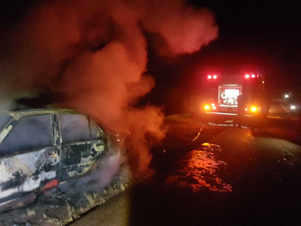 Un vehículo Renault 18 propiedad de un joven quedó consumido en su totalidad por el fuego en el paraje Villa Unión, el sábado por la noche.