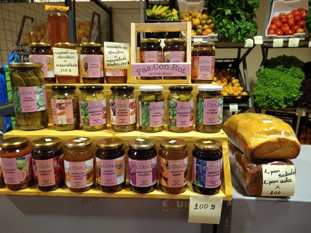 Hall- J & M Artesanías: Mesitas de Luz de rueda artesanal $2500. Fuelle para encender Carbón $1000; Box 7 – Descosido Cosido: Bolso Bandolera. $1400; Hall- Deco Trap: 2 trapos de piso $180. 2 alfombra 0,50 x 0,70 mt. $800; Box 6- Oporto artesanías: 1 mermelada + 1 Pan casero $280 y Hall- ART. Limpieza Verónica: 2Lt. Poet + 1Lt. Lavandina $110.