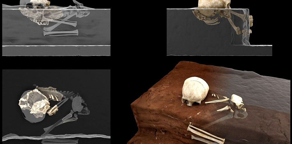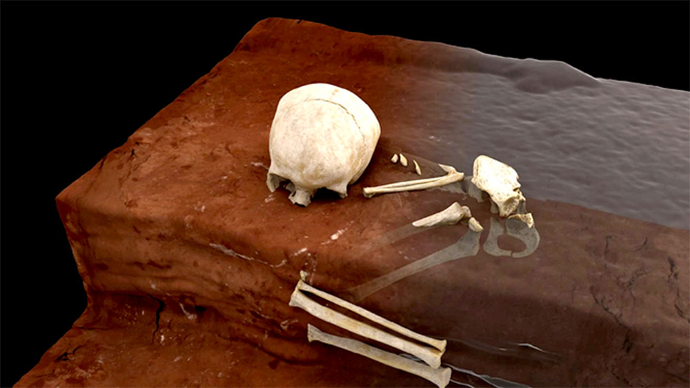 Reconstrucción virtual de los restos de Mtoto, el enterramiento humano más antiguo de África.