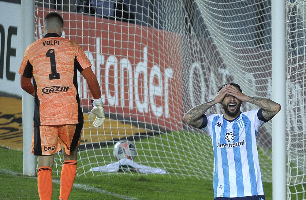 Las subidas de Reinaldo sobre la banda izquierda le permitieron al conjunto paulista quebrar la resistencia defensiva de Racing y así logró dos chances claras, una a través de un remate en el área de Luciano que hizo destacar al arquero Gabriel Arias con una volada espectacular en el palo inferior derecho.