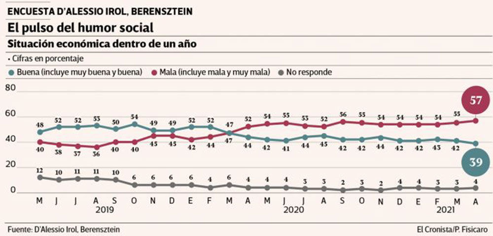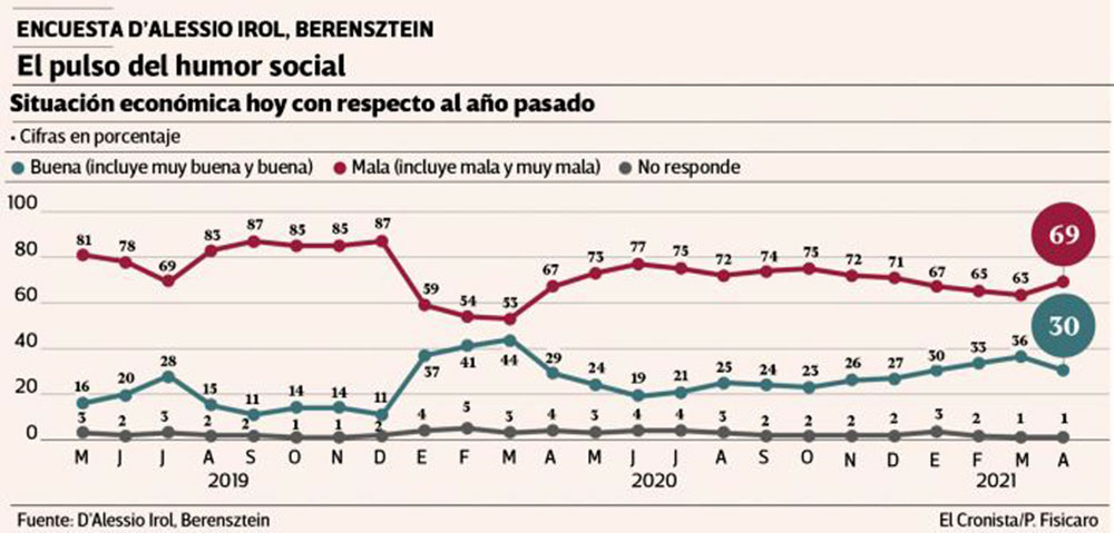Así lo revela la última entrega del Monitor del Humor Social y Político que D’Alessio IROL/Berensztein realiza de forma exclusiva para El Cronista.