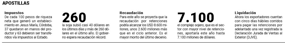 El informe realiza la medición nacional haciendo un promedio ponderado de cultivos, que marca que el Estado se queda con el 62,6% de la renta agrícola.