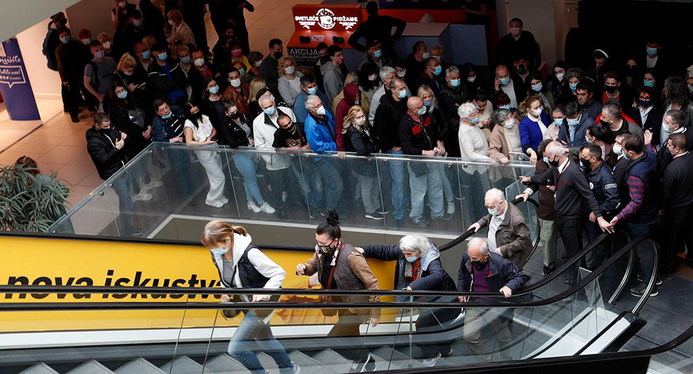 En la capital Belgrado, un centro comercial ofrecía además cupones de compra a los 100 primeros en ser inmunizados contra el coronavirus.
