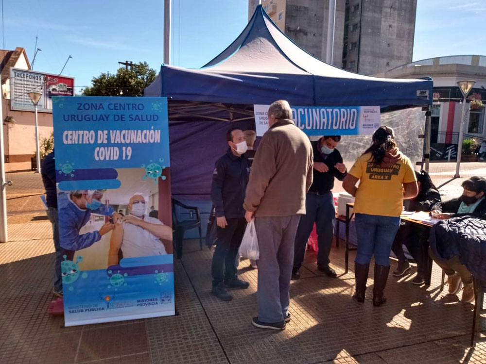 El Ministerio de Salud Pública vacunó hoy frente al Banco Macro de San Vicente, municipio que en estos primeros siete días de mayo sumó 20 contagios de COVID-19.