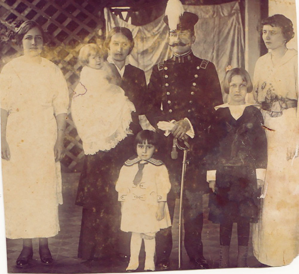 En todo el pueblito se oían los alaridos de los dos guapos que después de debidamente aconsejados fueron “refrescados” con algunos baldes de agua fría y, siempre amarrados descansaron algunas horas, después de lo cual, descalzos y mojados, sin revólver ni cuchillo, fueron liberados con nuevas recomendaciones de buena conducta, volviendo a sus casas. Nunca más volvieron los guapos a divertirse al pueblo tirando tiros. Se casó con Clotilde Krieger, con quien tuvo cuatro hijos: Elvira, Pilar, María Teresa y Enrique Cambeiro Krieger. En la fotografía superior, tomada en las primeras décadas del siglo XX, se lo observa junto a su esposa y a tres de su cuatro hijos.