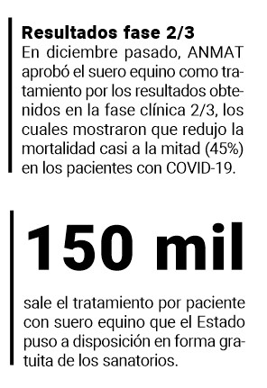 Esto es así porque las sociedades científicas aún debaten su uso, pese a que la Asociación Nacional de Medicamentos, Alimentos y Tecnología (ANMAT) ya autorizó el uso del suero equino como tratamiento contra el COVID-19.