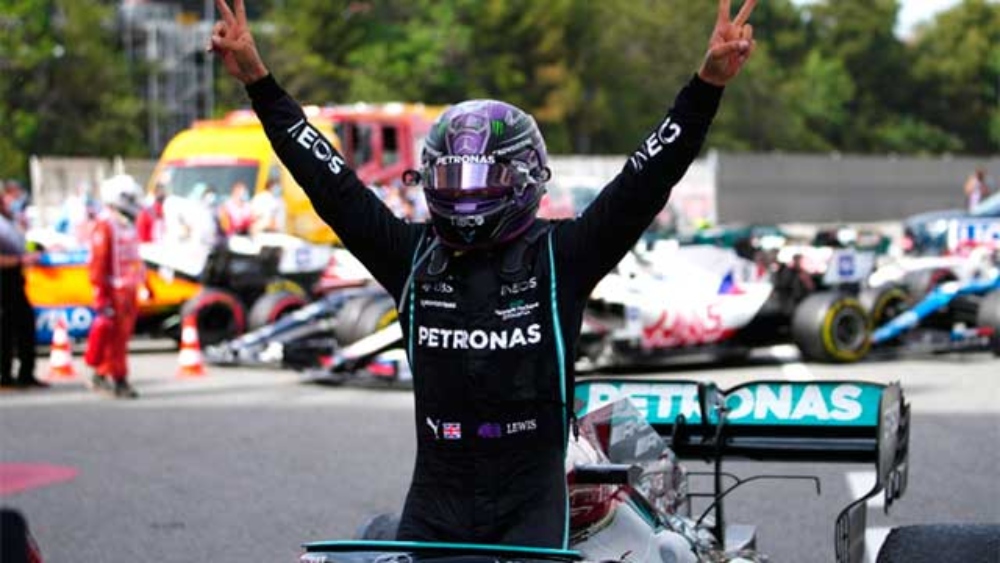 El monarca británico, que el sábado celebró las 100 pole position, consiguió su 98va. victoria en la F1, la sexta en el trazado de Montmeló y la tercera del año en cuatro carreras tras imponerse también en Bahréin y Portugal.