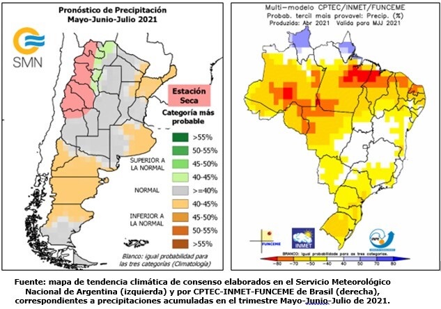 La previsión elaborada por CPTEC-INMET-FUNCEME de Brasil marca también una tendencia con precipitaciones inferiores a lo normal en la cuenca de aporte a Yacyretá en territorio brasilero.