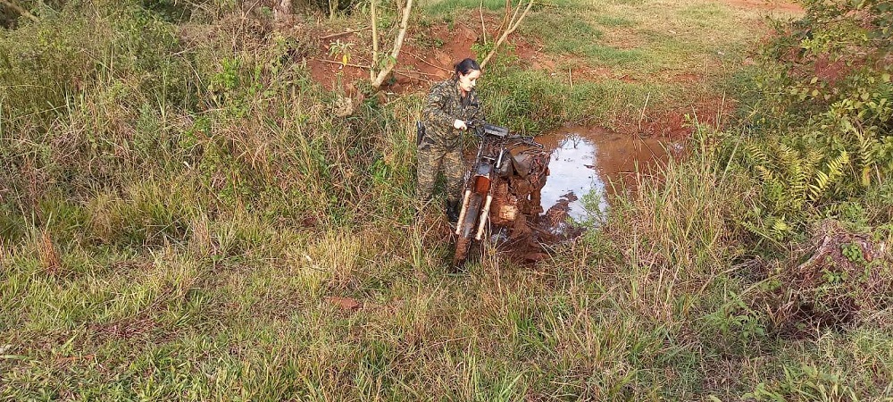 Uno de los equipos policiales salía de un espeso camino de tierra cuando se encontró con el prófugo, quien circulaba a excesiva velocidad en una moto tipo cross, aparentemente cedida por uno de sus familiares.