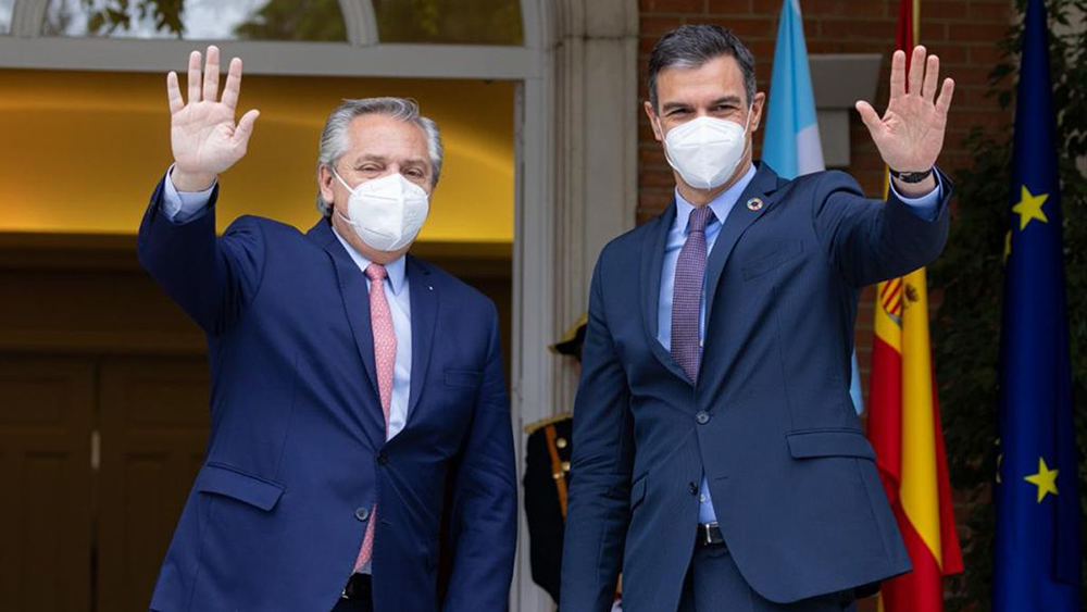 En la declaración conjunta, Alberto Fernández agradeció el respaldo español en los planteos en organismos multilaterales de créditos “frente a la inmensa deuda” que su Gobierno “heredó en 2019” y remarcó la necesidad de que no se cobre la sobretasa en este contexto de pandemia.