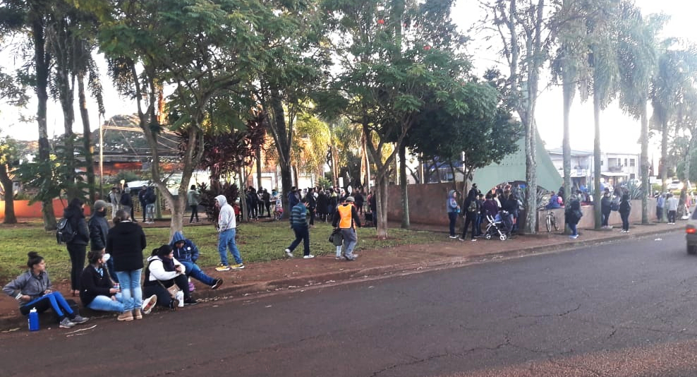 Un grupo de unas 200 personas que responden al Frente de Organizaciones en Lucha (FOL) se movilizan frente al Juzgado de Instrucción de Apóstoles que investiga el crimen de César Daniel Tizato (15).