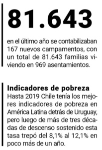 Hasta 2019 Chile tenía los mejores indicadores de pobreza en América Latina detrás de Uruguay, pero luego de más de tres décadas de descenso sostenido esta tasa trepó del 8,1% al 12,1% en poco más de un año.