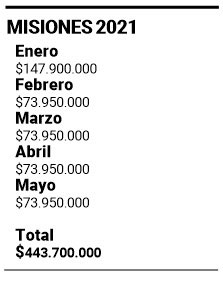 En el caso de Misiones, la primera cuota de los subsidios (enero de 2021), fue estipulada en 147.900.000 de pesos. De febrero hasta mayo de este año, la cifra bajará a 73.950.000 pesos mensuales.