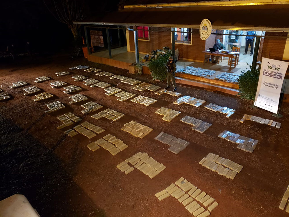 Los efectivos, con la ayuda de los perros entrenados para detectar narcóticos, encontraron más varios bultos disimulados con hojas que contenían 1.100 ladrillos prensados de una sustancia que sometida al test dio resultado positivo para cannabis sativa con un peso de 962 kilogramos. La mercadería fue secuestrada.
