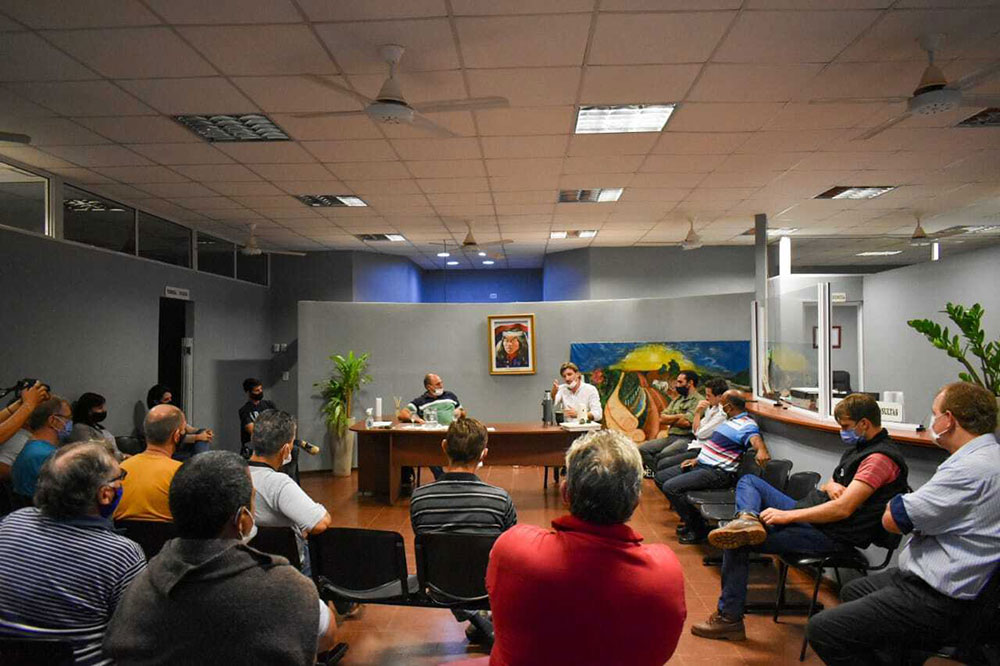 En la reunión estuvieron presentes miembros de la Comisión Directiva a la que se consideró “inválida”, exfuncionarios municipales y el ministro del Agro y la Producción, Sebastián Oriozabala.