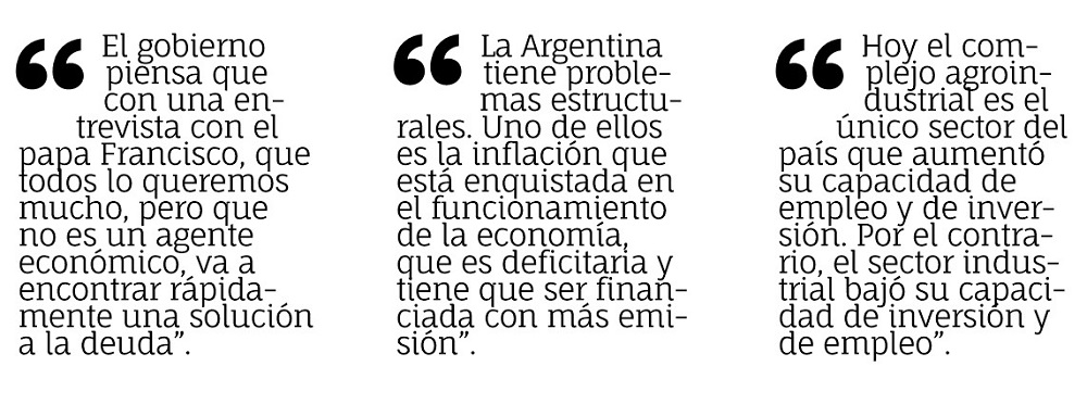 Esto hace que las variables de los commodities, cómo los valores de alimentos, empiecen a cambiar muy favorablemente para el país; pero el que no ha cambiado es la Argentina que continúa dentro del mismo derrotero que tenía en los dos últimos años de la gestión de Mauricio Macri (2015-2019).