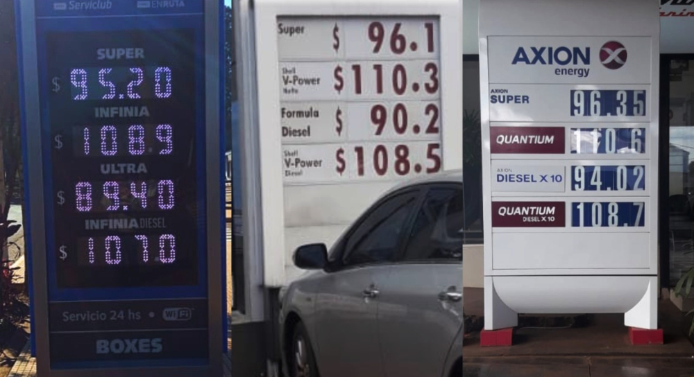 En tanto, en los surtidores de YPF de la ciudad de Posadas, el litro de la Premium que estaba $101 ahora cuesta $106,9, la Súper subió de $88,60 a $93,70, el Diésel $87,90 y la Infinia Diésel $104,9.
