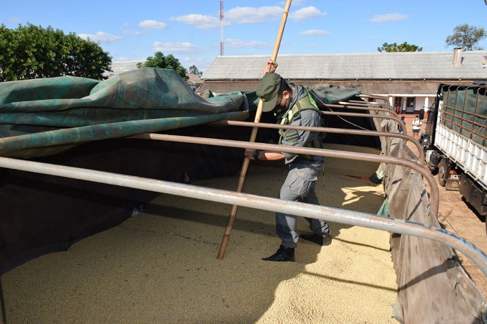 Allí, los trabajadores de la Fuerza Federal interrumpieron la marcha de dos tractores, uno con un semirremolque y otro con un acoplado. Al constatar la documentación que llevaban los conductores y su cotejo con la carga que llevaban, los gendarmes notaron irregularidades en la documentación necesaria para la exportación de la misma: ésta no especificaba el lugar de origen ni tenía la firma del despachante.