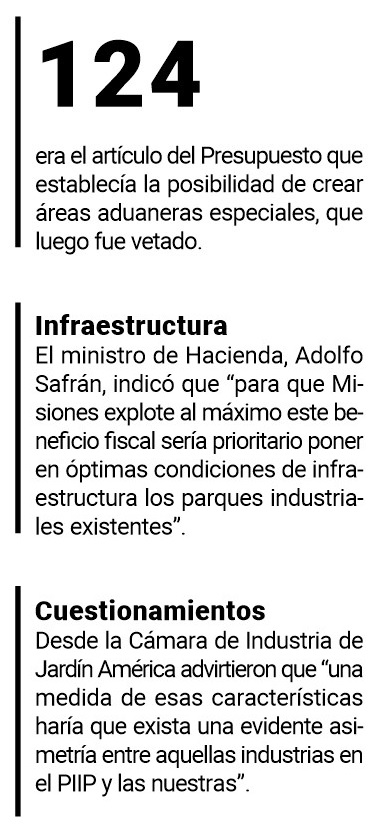 A su vez detalló que “para que Misiones explote al máximo este beneficio fiscal otorgado por el Gobierno nacional sería prioritario poner en óptimas condiciones de infraestructura los parques industriales existentes”.