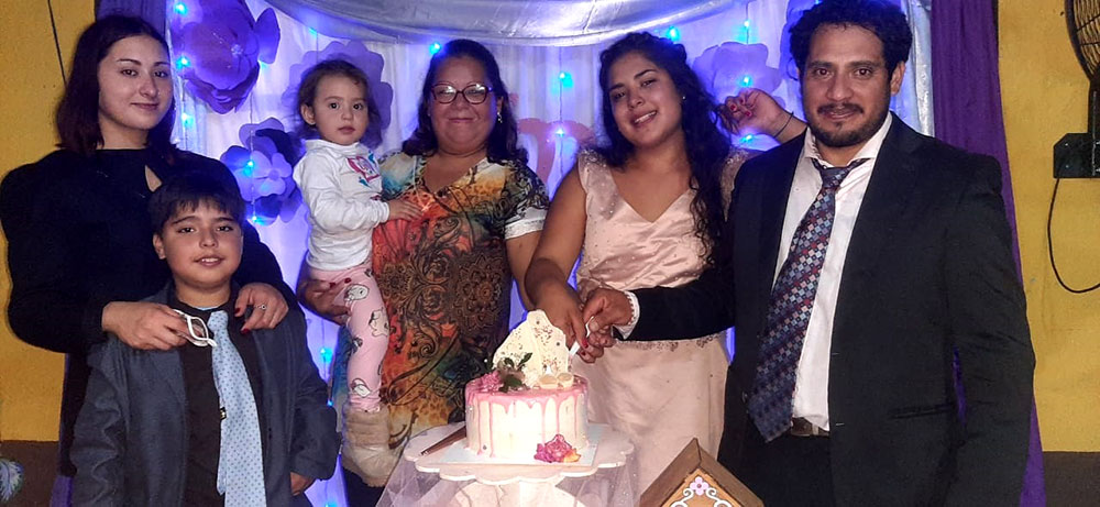 “La mamá de Dana, Georgina me dijo que ella le había pedido que por lo menos le alquilen un vestido para sus 15, pero ellos no podían. Así que lancé el pedido de un vestido y una torta para Dana en Twitter, conté que era su sueño tener esto para sus 15 años y que bueno, la situación de vulnerabilidad económica de su familia no le permitía cumplirle el sueño. Dana es asmática, igual que su papá Cristian. Por suerte hubo muchas personas solidarias como Anita Espósito, la hermana de Lali Espósito quien también le envió un saludo a Dana, Jorge Rey y María Florencia Freijo quienes me ayudaron a hacer realidad, no sólo la reunión chiquita con un vestido y una torta para Dana hoy (por el viernes), sino también juntamos dinero para vestir a toda su familia y para comprar los materiales de construcción para hacer una habitación de 5×3 de ladrillos, para que todos estén más cómodos, que tengan una mejor calidad de vida”, explicó Colazo a PRIMERA EDICIÓN.