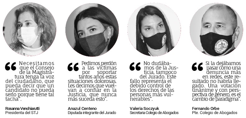 Entre estas conclusiones, la de Valeria Soczyuk, secretaria del Colegio de Abogados y denunciante ante el Jurado de Magistrados del desempeño de Fragueiro, remarcó su conformidad: “Realizamos un buen trabajo, no dudábamos de la Justicia, tampoco de los colegas que nos representaron en el Jurado. Esto representa cambio y un debido control de los derechos de las personas más vulnerables”.