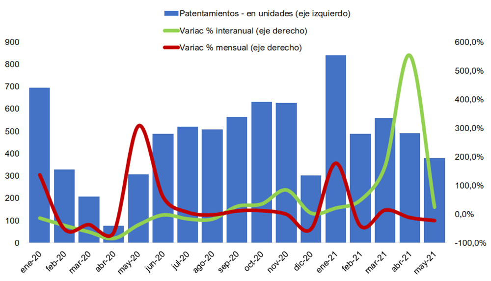 A su vez, contra el mes previo -abril 2021-, se sintió una retracción del orden del 22,4%, que equivale a 110 unidades patentadas menos en este mes, que se vio afectado por las nuevas medidas de restricción de circulación y de cierre de concesionarias decretas a nivel provincial y nacional. Esta retracción es la segunda consecutiva en la provincia.