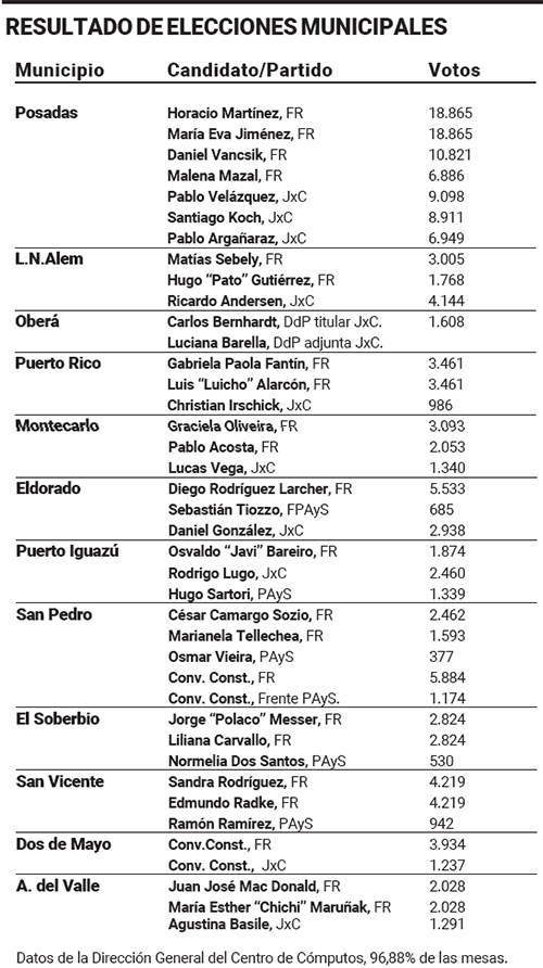 Se trata del único municipio de Misiones donde se impuso el Frente Juntos por el Cambio y que a su vez funciona como una suerte de plesbicito para la gestión renovadora del intendente Carlos Fernández.