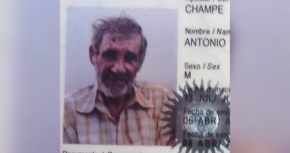 Según la denuncia radicada por su concubina de 72 años en la comisaría local, Champe salió de su domicilio el jueves 20 de mayo y hasta el momento no retornó.