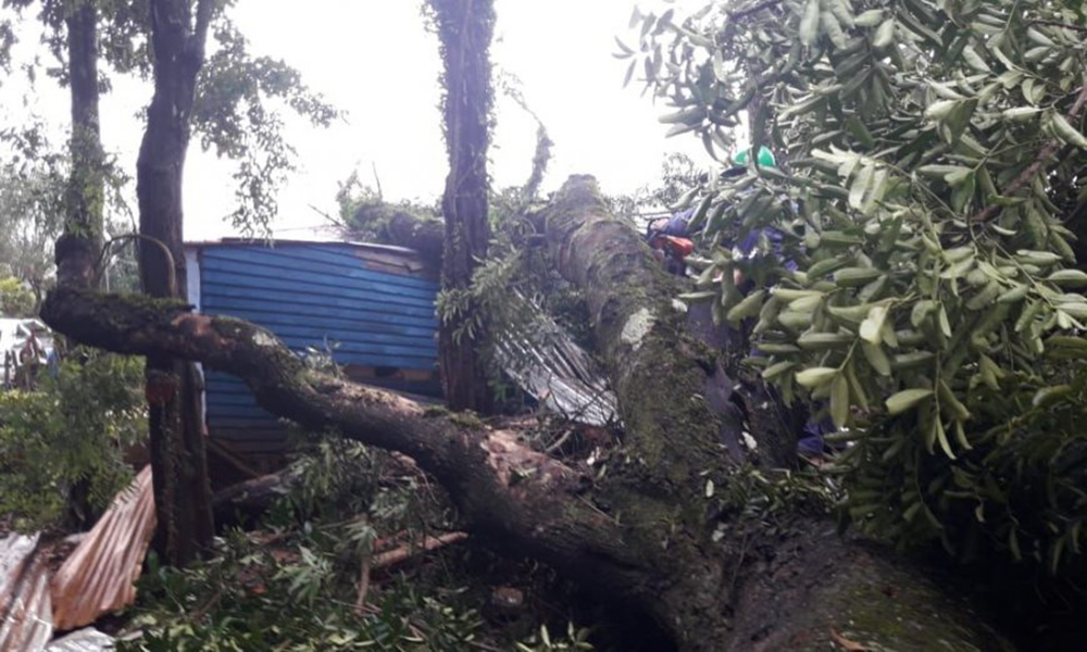 Dos familias del barrio Villa Christen de Oberá fueron asistidas este miércoles luego de que en la madrugada de hoy un árbol de gran porte cayera sobre sus respectivas viviendas destrozándolas por completo.