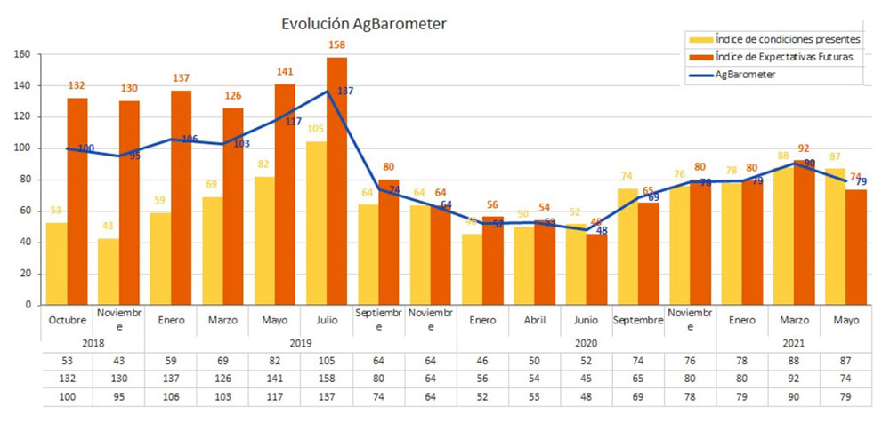 El Centro de Agronegocios y Alimentos de la Universidad Austral dio a conocer la edición de Mayo de 2021 del Ag Barometer Austral. El nuevo informe indica que se produjo una caída en el ánimo y confianza de los productores del 12,2%.