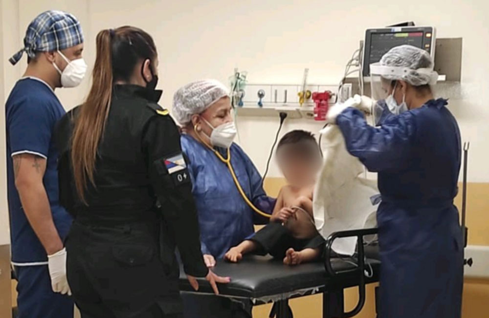 El pequeño de 4 años se atoró con un trozo de carne que le obstruía las vías respiratorias, desvaneciéndose por falta de aire. Finalmente fue reanimado por los uniformados con RCP.