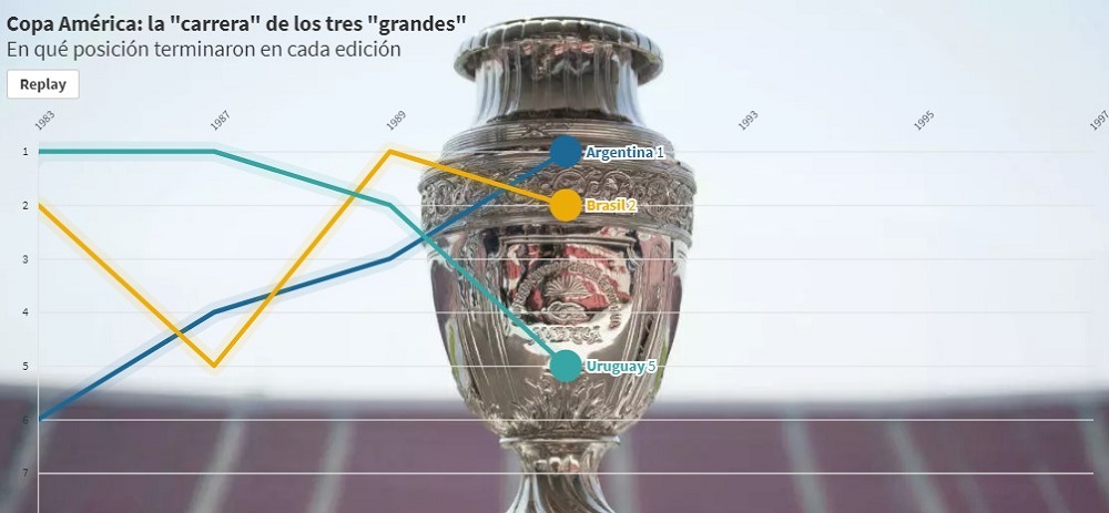 Esta es la evolución, edición tras edición, de los tres principales ganadores de la Copa América: