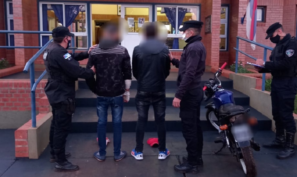 Finalmente, en el paraje May Bau arrestaron al segundo acusado y secuestraron una motocicleta Motomel de 150cc presuntamente utilizada en el hecho. Los detenidos fueron alojados en sede policial y puestos a disposición de la Justicia.