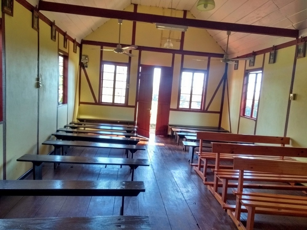 “En el interior podemos ver los bancos históricos de un lado y los nuevos bancos del otro. A ambos lados tenemos bancos, es una manera sutil de indicar la continuidad de la comunidad en el tiempo, pasando la posta entre generaciones que vienen desde los bisabuelos y que han legado un patrimonio que la comunidad se encarga de mantener e incrementar. Mientras que es en el altar donde se pone de relevancia la austeridad de la propuesta, inmediatamente al lado, un confesionario simplemente trabajado, resaltando su función con el trillage y el remate superior, que genera un espacio de intimidad, separado del resto de la nave”.
