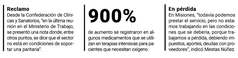 Desde la Asociación de Clínicas y Sanatorios Zona Sur de Misiones, Favio Mestas Núñez explicó a PRIMERA EDICIÓN que “la situación es crítica y se da porque a lo largo del último año y medio de la pandemia hubo muy pocos aumentos de los aranceles que percibimos por las prácticas. Como estábamos en emergencia sanitaria, el Gobierno nos brindaba ayudaba para pagar los sueldos con los ATP, entonces se plegó a un no aumento de los aranceles, pero la inflación tuvo un importante incremento”.