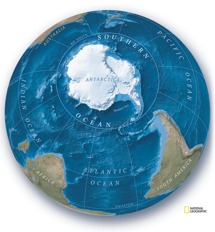 A partir del 8 de junio de 2021, Día Mundial de los Océanos, la National Geographic Society reconoce al océano Austral como el quinto océano del mundo.