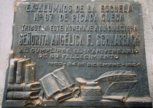 A un año de su muerte, sus alumnos colocaron una placa en el panteón que guarda sus restos, “expresando lo mucho que querían a esta mujer, a esta docente rural, que hizo todo por la educación en plena selva. Fui hace poco hasta la escuela y todavía queda monte, imaginémonos en ese tiempo”, dijo, al tiempo que recordó que “todo el trabajo es acompañado por fuentes y bibliografía para que nadie pueda refutarnos. Una serie de datos, al ser investigados en profundidad resaltan la figura emblemática de la docente, como la auténtica precursora de la Fiesta de la Yerba”.