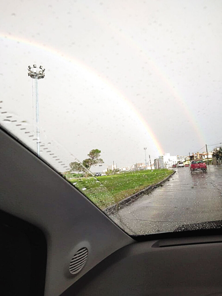 Con el cansancio natural luego de las horas transcurridas. Frío, lluvia y de pronto en el horizonte me sorprende la imagen bella que la naturaleza suele brindar: un hermoso arcoíris anunciando con sus colores maravillosos que tal vez pasaría la lluvia.