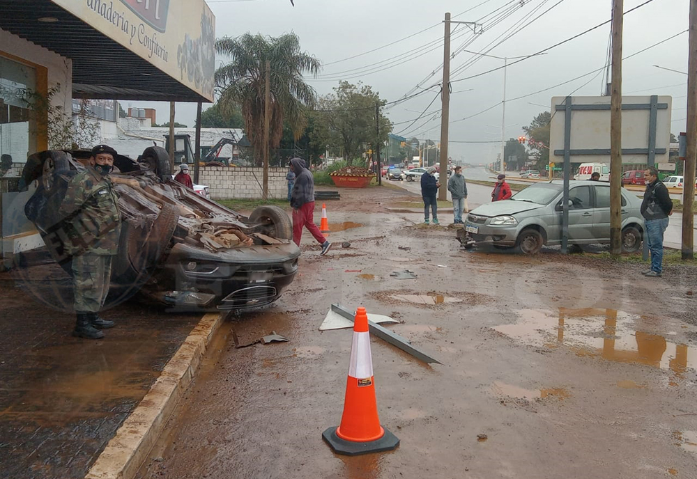 Como consecuencia del derrape y posterior golpe contra el otro automóvil, terminó por volcar, quedando apostado en posición invertida.