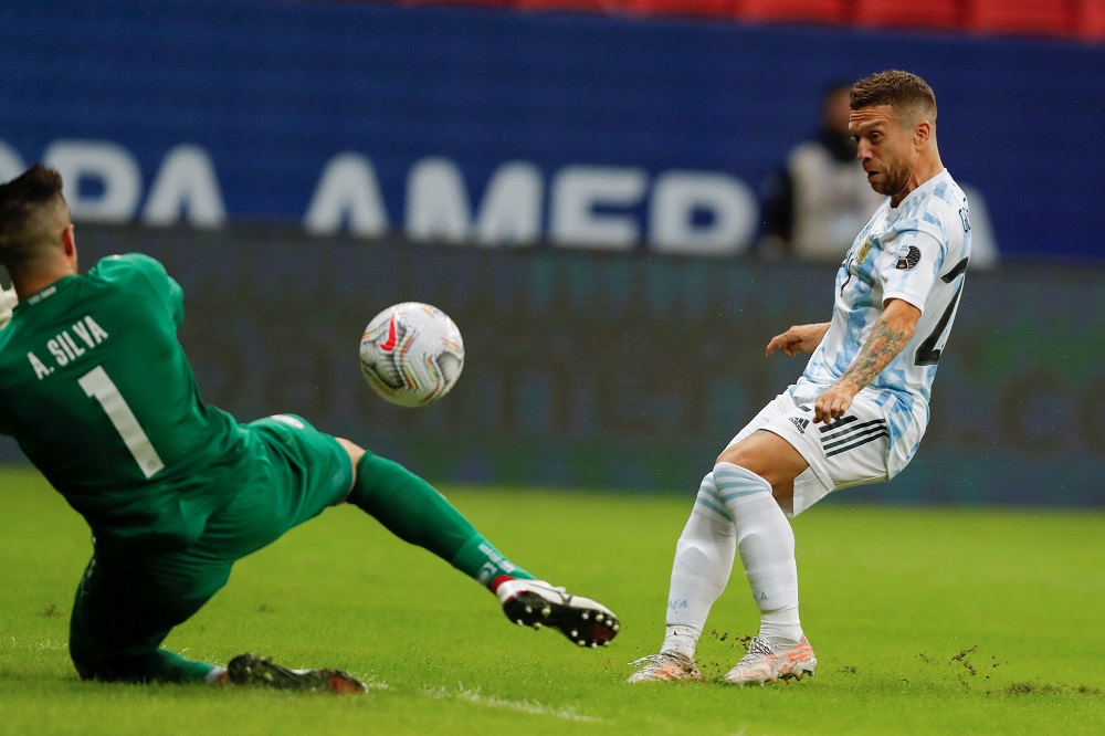 Un tempranero gol de “Papu” Gómez en una inesperada conexión letal con Ángel Di María alcanzó a la Selección Argentina para derrotar 1-0 a Paraguay y treparse en soledad a la cima del Grupo B de la Copa América de fútbol.