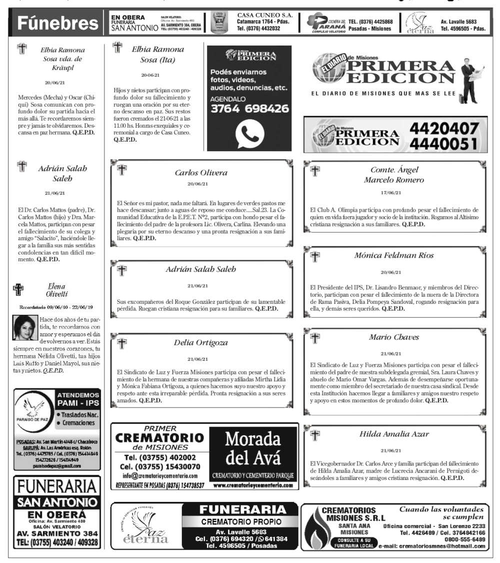 Tags: Fúnebres 22-06-2021