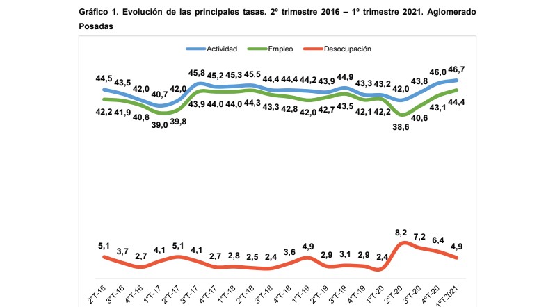 Por último, el estudio remarcó que Posadas registró un descenso en este indicador durante el primer trimestre del año: mostró una tasa de desocupación del 4,9%, descendiendo 1,5 puntos porcentuales respecto al trimestre anterior; pero aún se mantiene con niveles mayores comparando con igual trimestre de 2020: en ese momento, había tocado un piso (apenas 2,4%), por lo cual está aun a 2,5 p.p de distancia.