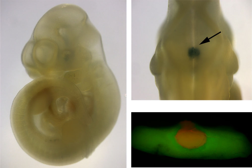 Embrión de ratón. Con la flecha se indica el lugar de la hipófisis. Fuente imagen: gentileza investigadora.