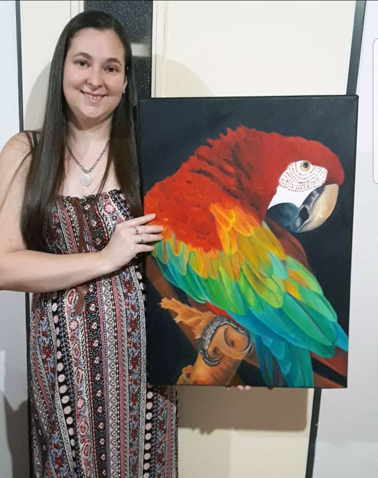 Por prescripción médica un día empezó a pintar, y descubrió otro mundo, que le permitió no solamente canalizar sus sentimientos sino que también encontrar una entrada de dinero extra convirtiéndose así en un pequeño emprendimiento.