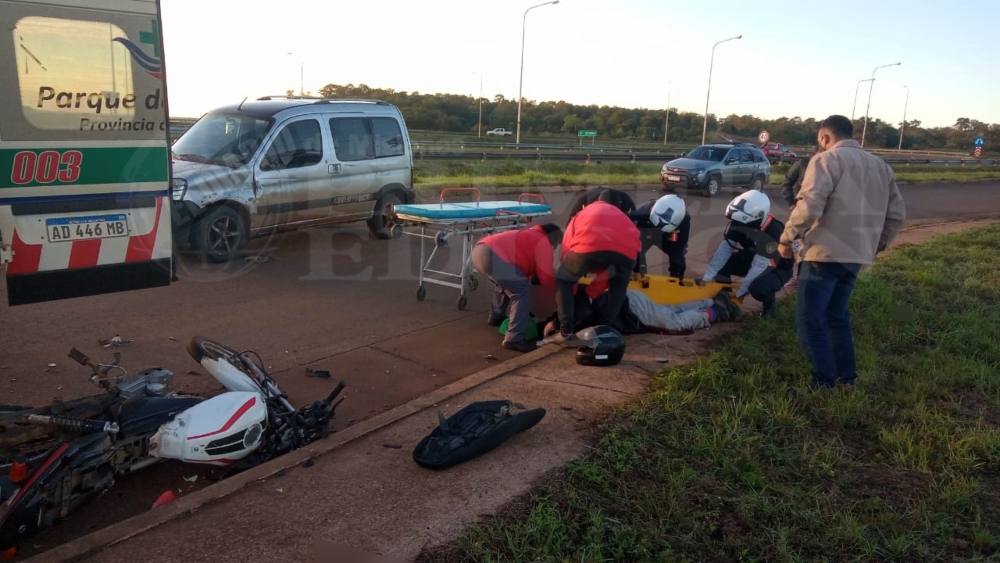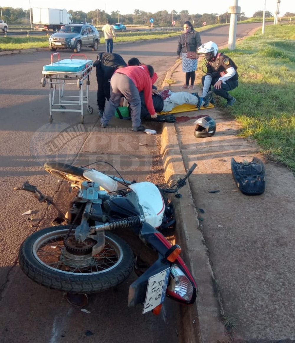 En las primeras horas de este lunes se registró un siniestro vial entre una motocicleta y un automóvil sobre la colectora del Acceso Sur que une Posadas y Garupá. El motociclista se llevó la peor parte y fue hospitalizado.