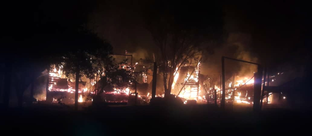 Cuando el personal arribó al lugar encontraron que la precaria construcción de madera de cuatro metros de largo por cuatro de ancho era afectada en su totalidad por las llamas.