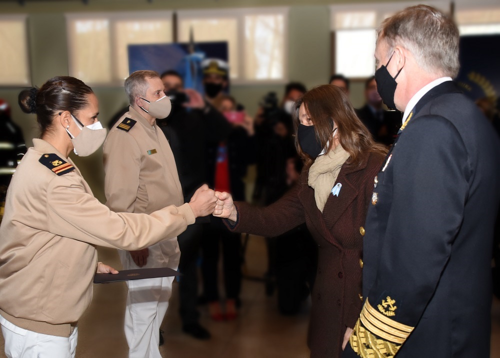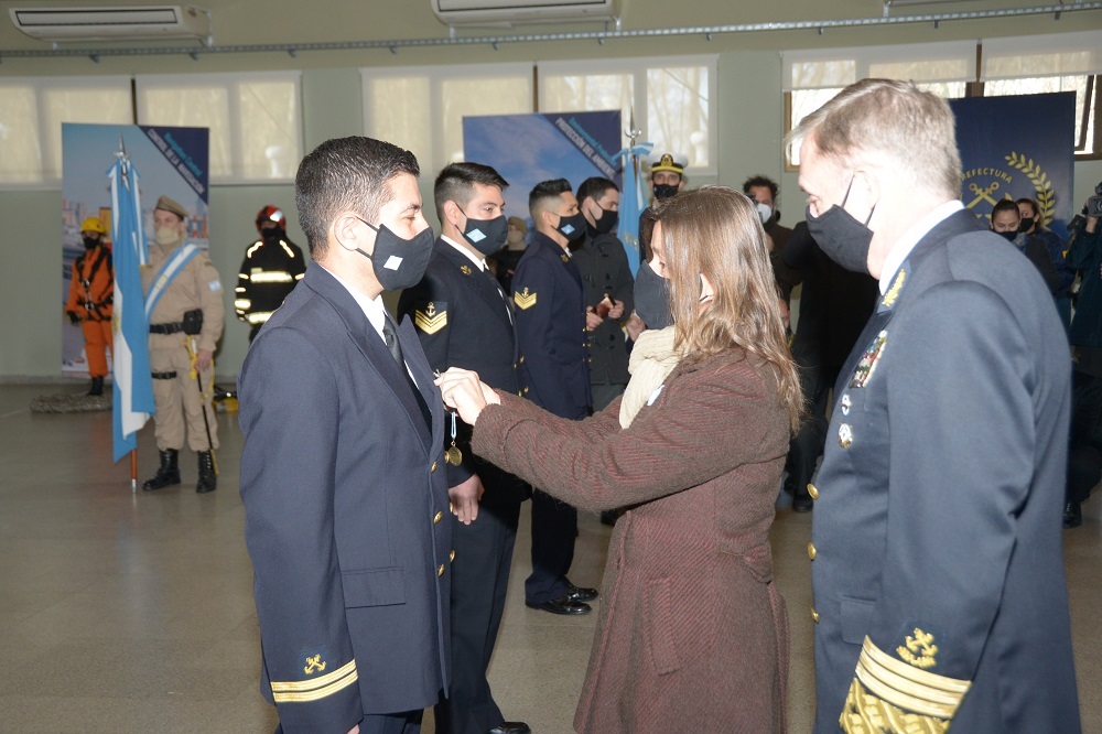 Al igual que el Prefecto Nacional Naval, la ministra de Seguridad, Sabina Frederic, destacó el trabajo realizado por la Institución durante toda la pandemia, con una mención especial al personal sanitario de la misma, encargado de la vacunación, atención y asistencia del personal.