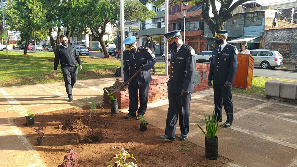 Respetando todos los protocolos sanitarios a raíz de la pandemia, la ceremonia se realizó en la plazoleta ubicada en avenida Mitre, entre las calles Buenos Aires y Félix de Azara, encabezada por el Jefe del Departamento de Investigaciones Federales local, comisario inspector Juan Valentín Roldán y el jefe de la División Unidad Operativa Federal Posadas, comisario Andrés Adrián Rodríguez.