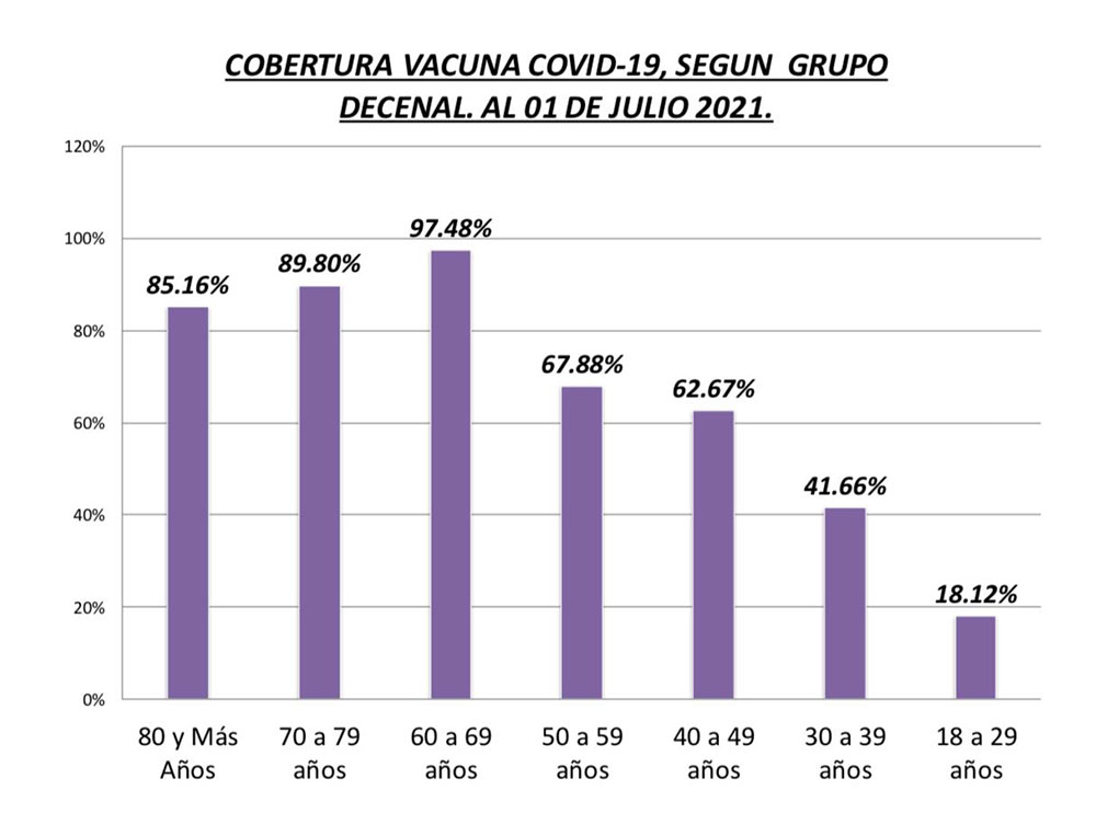 Pero la inoculación de los menores de 60 años, que ya lleva más de dos meses, es menor a la esperada: sólo alcanzó al 67,88% entre los de 50 a 59 años y el 62,67% entre los que tienen 40 y 49 años. El porcentaje de población vacunada de 30 a 39 es aún menor: apenas el 41,66%. Hasta ahora, sólo el 18,12% de los 228.000 misioneros de 18 a 29 años se inmunizó pero, este último grupo etario fue el último habilitado.