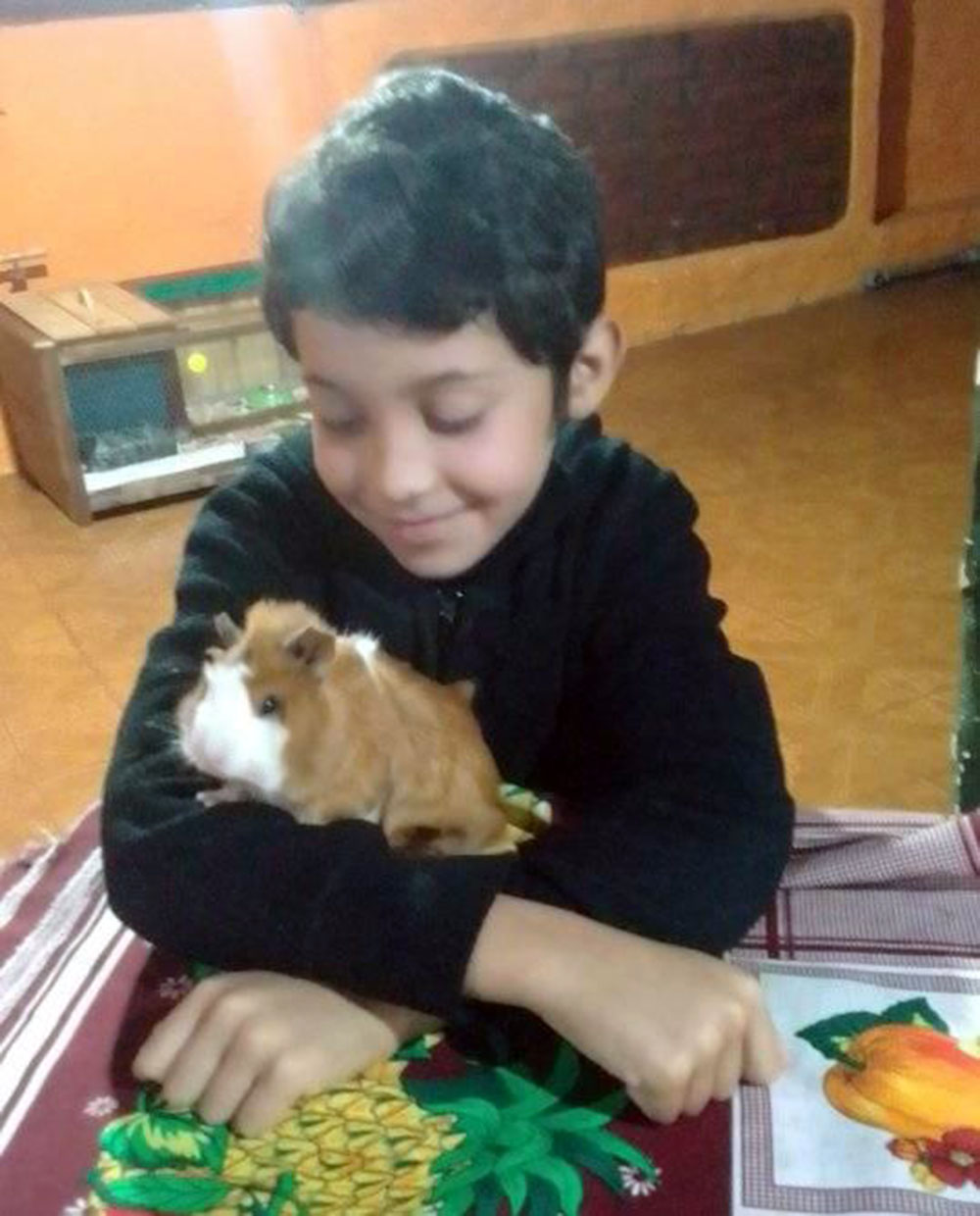 Angelo Paolo Pucheta tiene 9 años y vive en Puerto Libertad. Hace muy poquito se convirtió en el dueño de dos cobayas: Jandy y Lupita, conocidos comúnmente como conejitos (conejillos) de India o cuis.